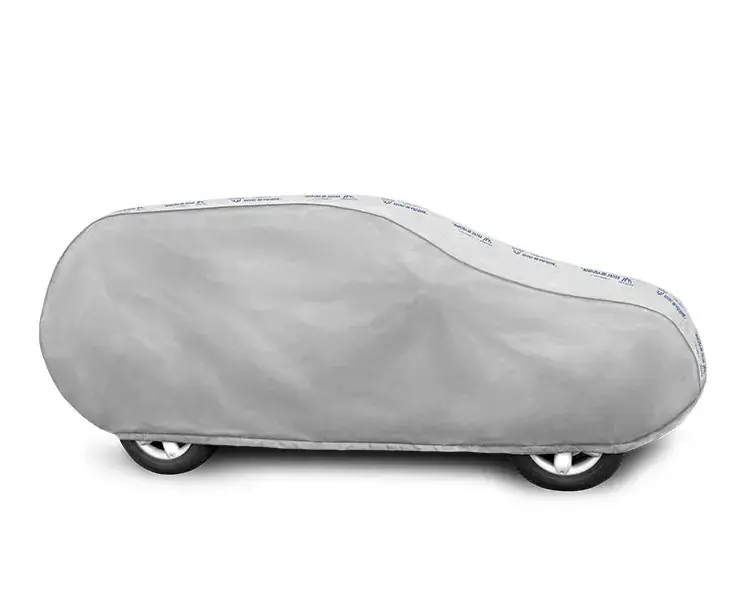 Materiał tekstylny, z którego wykonana jest plandeka dopasuje się zarówno do nieco mniejszego, jak i większego samochodu o podobnym kształcie i wymiarze nie przekraczającym podanego powyżej obwodu.